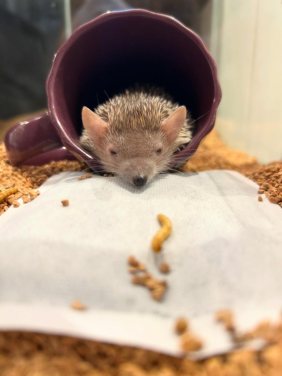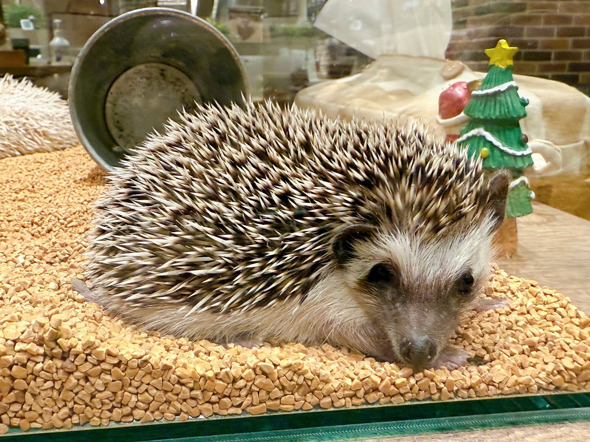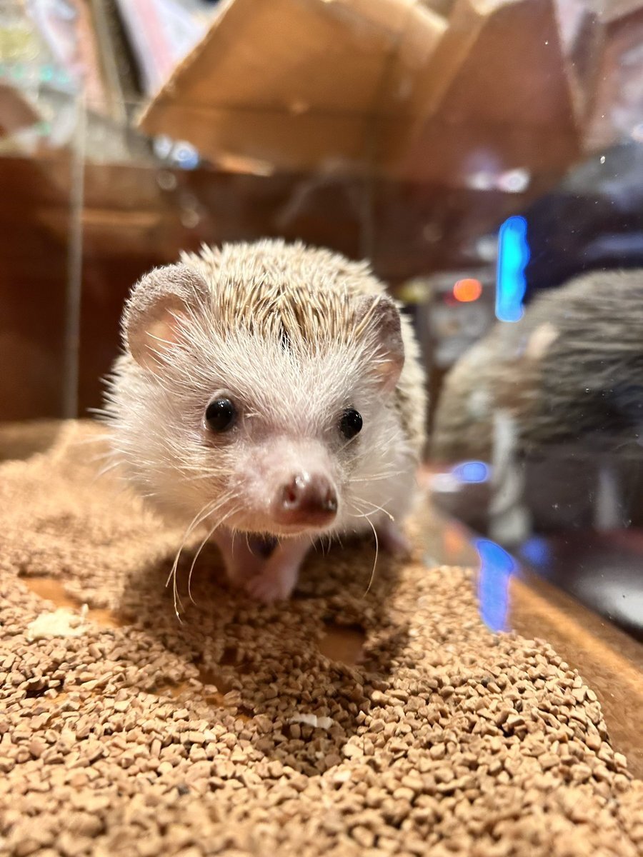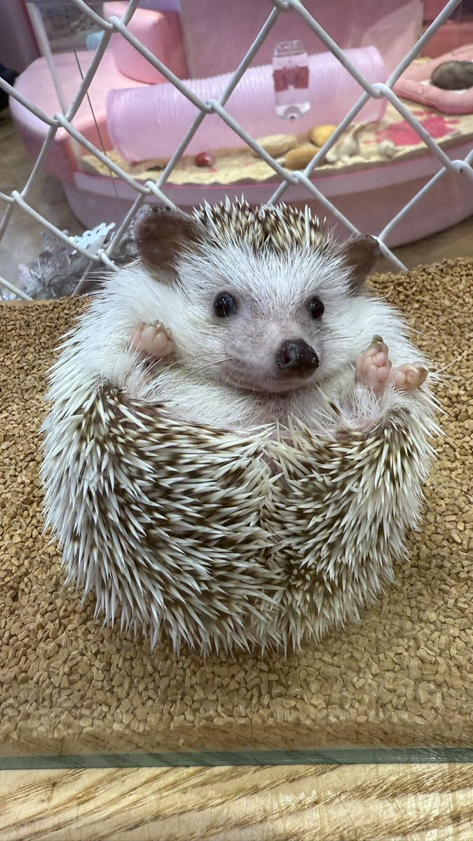 はっ😳 撮られてる📷 おはようございます🐾 本日も12時よりオープンいたしました🎀 皆様のご来店をお待ちしております✨ 📞 045-225-8815 #ハリネズミ #hedgehog #animalcafe #動物カフェ #横浜中華街 pic.x.com/OLt54OB54w