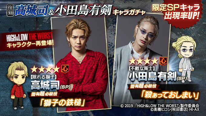 #THEWORST ☆4SPのTHE WORSTキャラクター再登場🔥 【眠れる獅子】高城司 【不敵な策士】小田島有剣 THE WORSTキャラをゲットするチャンスです! ぜひお見逃しなく🤩📢 #ハイローゲーム #HiGH_LOW_THE_WORST #HiGH_LOW pic.x.com/MwpkIGBWri