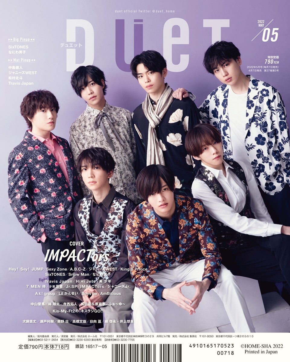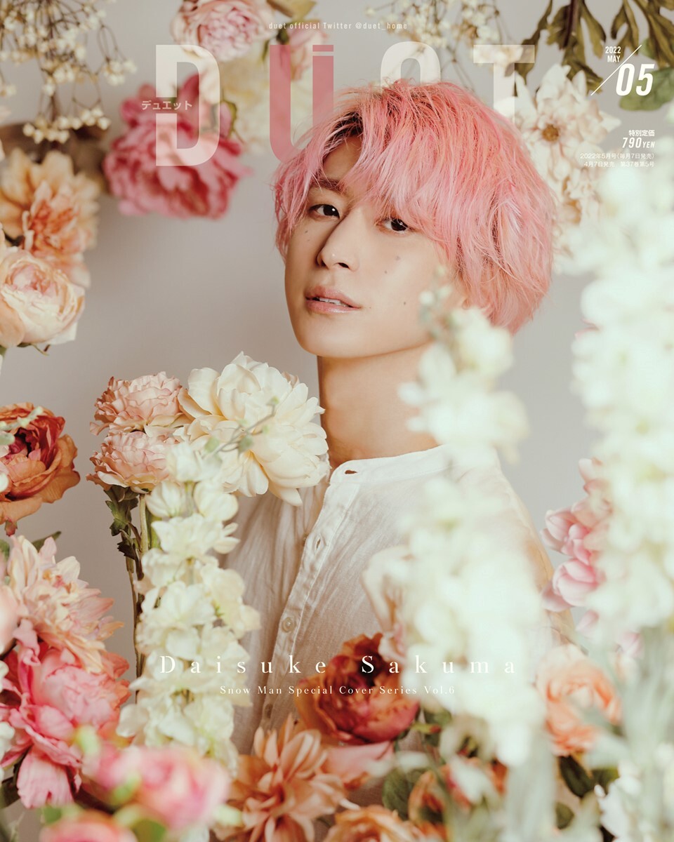 【表紙解禁】 #Duet 2022年5月号(4月7日発売) 表紙/ #佐久間大介 (#SnowMan ソロ表紙シリーズ第6弾) 表紙B面/#IMPACTors ビッグピンナップ/#SixTONES、#なにわ男子 マットピンナップ/#中島健人、#ジャニーズWEST、 #松村北斗、#TravisJapan ご予約受付中です。よろしくお願いします! pic.x.com/xPCUx79D1d