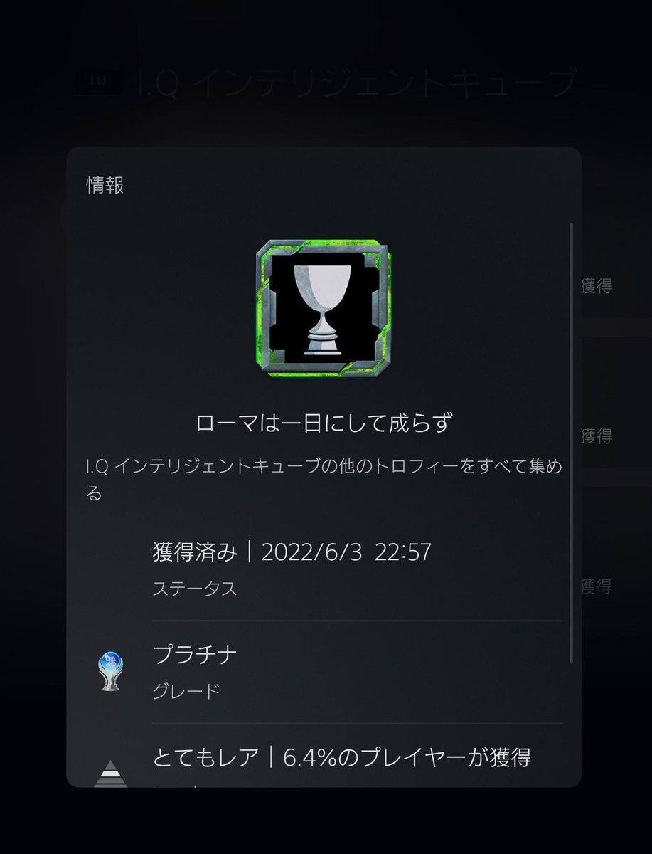 #トロコン 100% T0511 #プラチナトロフィー P0557 🎮I.Q インテリジェントキューブ #PS4 📅取得日2022/06/03 ⭐難易度★★☆☆☆ 💖好き度★★☆☆☆ ⏱️プレイ時間1H 📝感想:PS1時代の名作パズル。カンペ見ましたすみません。 #IQ pic.x.com/IT8brrliOq