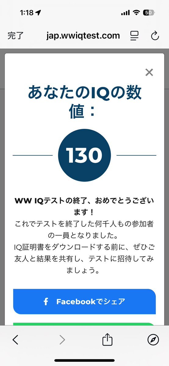 #知能検査 #知能テスト #IQ うっかり本名でやったから名前隠してるけど……IQ130だって いまからでMensa入会してみるべきか? ちなみにこのサイトのやつ 無料かと思ったらテストの結果を見るには料金が必要って出てきて ぐぬぬ……ってなった なんか騙された気分だったけど pic.x.com/2MBmSLzTK8
