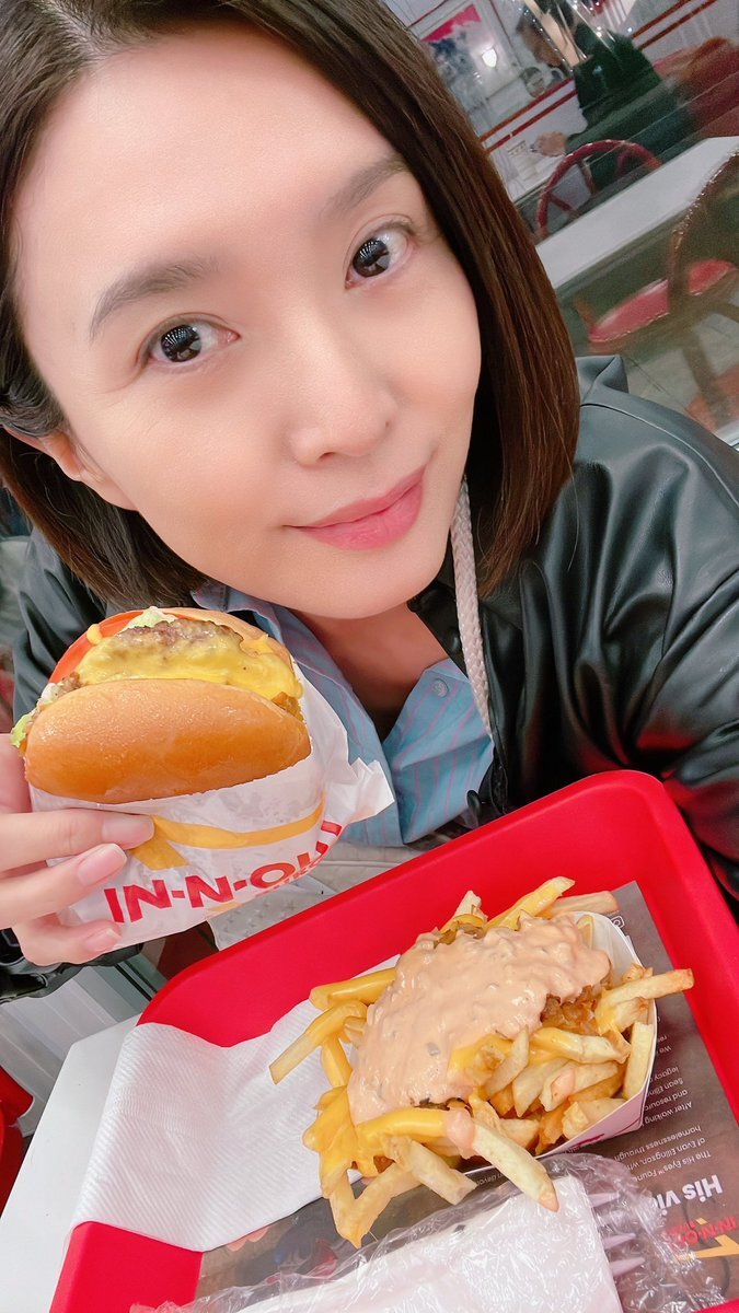 今日は撮影でした✨ 今回の撮影終わるまで油っこい物を控えていたので帰りにIN-N-OUT BURGERに駆け込みました😂ご褒美バーガー🍔美味しい😋 ポテトはアニマルスタイルで🍟🦁 #InNOut #撮影楽しかった pic.x.com/irgu9pbiF1