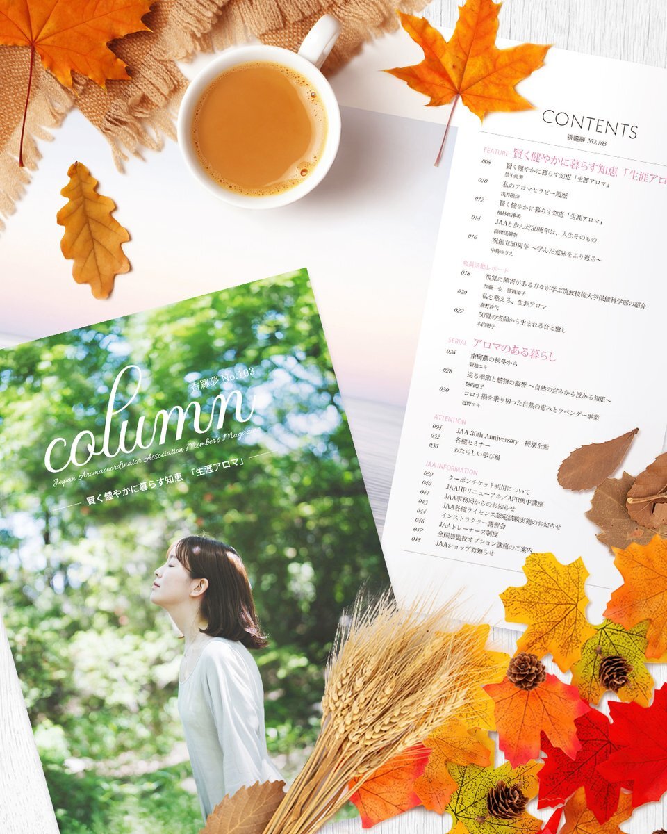 JAA会報誌『Column/香羅夢(コラム)』No.103発刊✨ 今回のテーマは 『賢く健やかに暮らす知恵「生涯アロマ」』 他にも"植物との共存"のエッセンスなど、皆様のアロマのある暮らしに役立つ内容です! 協会からの重要なお知らせもありますので、届きましたら必ず目をお通しください👀 #アロマ #aroma