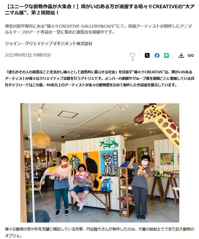 返信先:@cafe_ronronne#神奈川県 #黒岩祐治知事 平塚障害福祉事業所「嬉々!!CREATIVE(#キキ・クリエイティブ)」視察 pref.kanagawa.jp/chiji/photolog… 運営 #ジョイン・クリエイティブマネジメント 社長 #北澤桃子 #武田桃子 #日本共産党 #しばき隊 #中指おっ立て隊 #高橋史帆 #JCPサポーター #ケースワーカー #史帆高橋 pic.x.com/vVawqJUnpX
