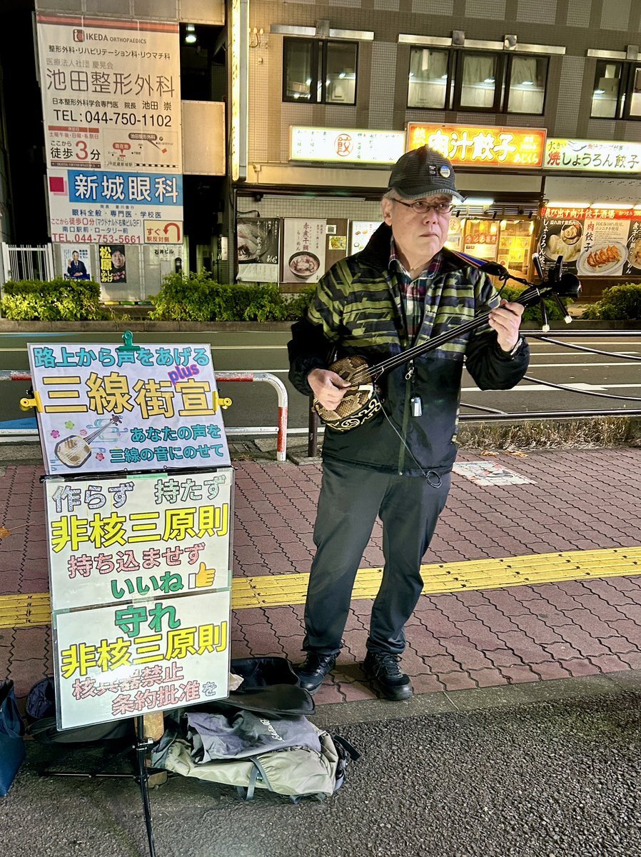 2025.11.27 #三線街宣 #武蔵新城 …近所の駅前で近所の人と…三線弾いてプラスターで「市民の声」をアピール😊 …青年が、三線の音に足を止め、プラスターを見て、スピーチを聴き、「高市政権はダメ、もっとまともな労働政策を」と…対話になる… 〜たかが街宣、されど街宣〜 #JCPサポーター pic.x.com/mHvVN0xTti