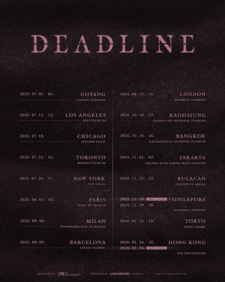 BLACKPINKのワールドツアー「DEADLINE」の最終日程が決定しました。✨ 皆さん、楽しみにしていますか?🥰 #BLACKPINK #BLACKPINK_DEADLINE #BLINK #BLACKPINK_WORLDTOUR2025 #BLACKPINK好きな人と繋がりたい #JISOO #JENNIE #ROSÉ #LISA pic.x.com/Xx7fhyac4B