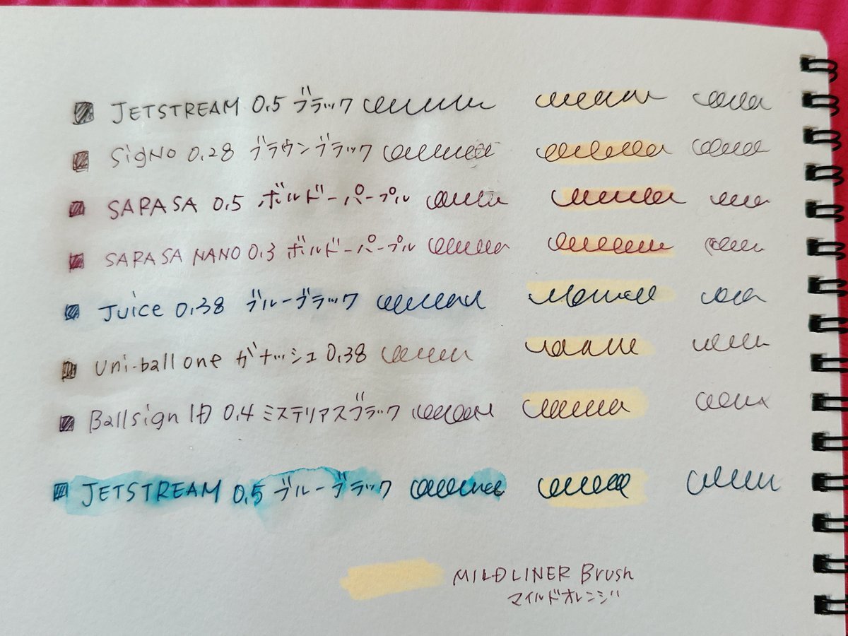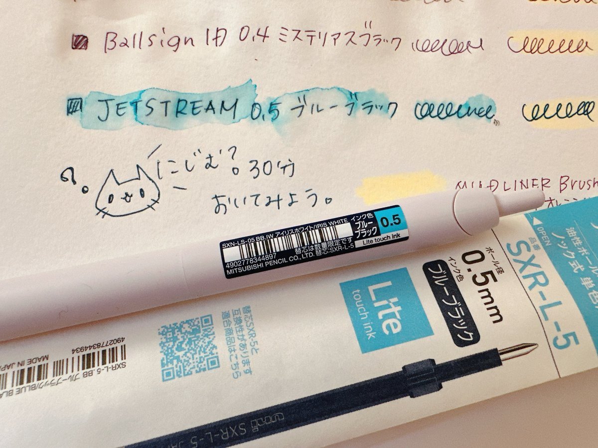 ボールペンの上に水性ペン乗せるのは擦れちゃうと思ってたらあまりやらんかったけど、水彩はまた別なんだと知ってちょっと試してみた。 ジェットストリームの黒はもちろん大丈夫と思ってたけど、限定ブルーブラックが溶けまくりで...なんで... signoとボルサIDがつおい。