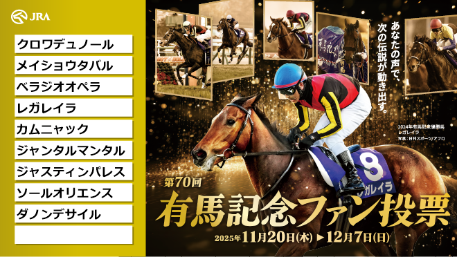 有馬記念ファン投票実施中! 下記URLからキャンペーンに参加して、 #えらべるPay をゲットしよう! arimafan-vote.com @arima_fv #有馬記念ファン投票 #有馬記念 #JRA pic.x.com/7D1faNcH4I