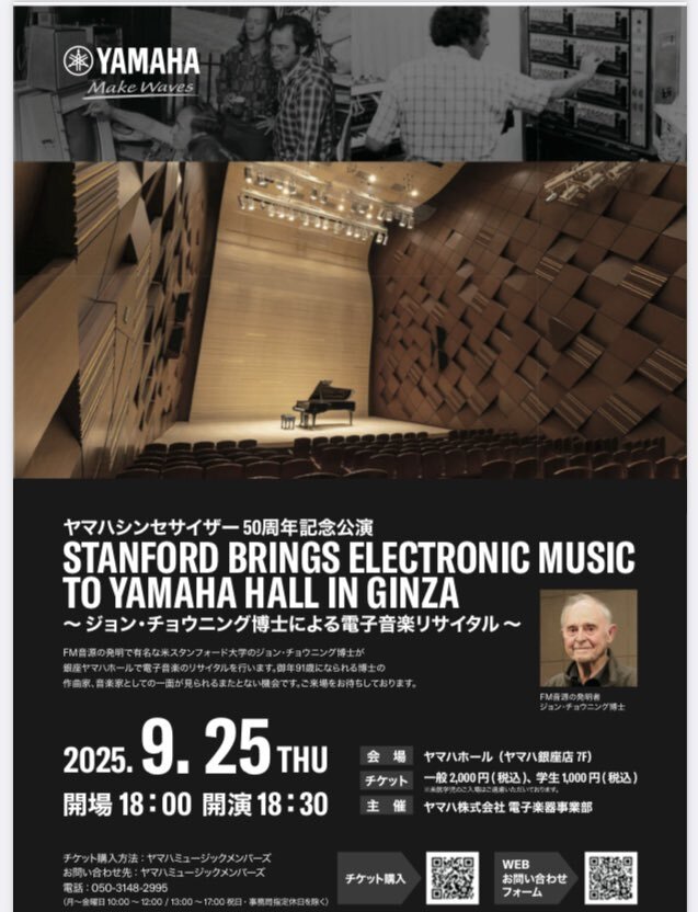 DX7IIのオーナーになって38年、FM音源の発明者による電子音楽リサイタルにJSPA招待枠で参加させて頂きました。 #ジョンチョウニング #FM音源 #DX7 #JSPA pic.x.com/bWO2zLpcVv