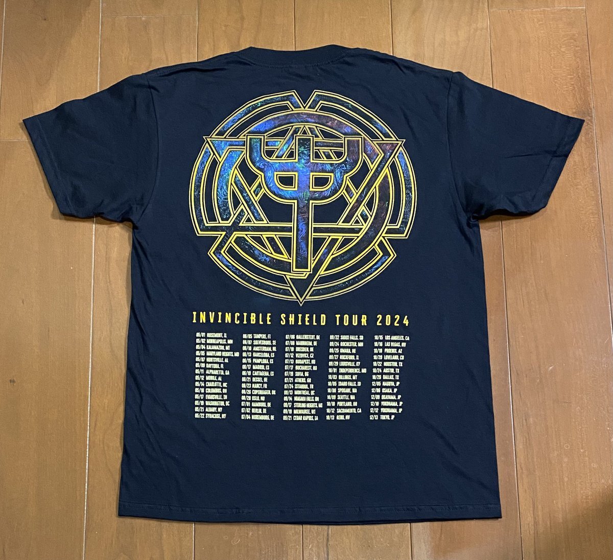 #今日はこのTシャツ よっしーとお別れして着替えました😅 独り言で呟いていた印籠Tシャツはこれ!どことなく家紋みたいで和風な雰囲気があるような気がする。 #JudasPriest #InvincibleShieldTour2024 pic.x.com/p1t9bNKzga