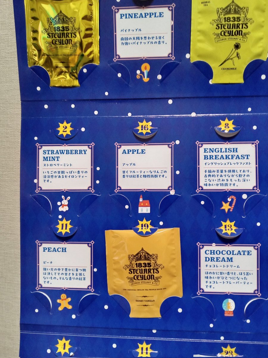 ☃️アドベントカレンダー15日の☕ティーは “ウヴァ” 世界三大紅茶のひとつ。 飲みやすくて凄く美味しい! 好みな味ෆ落ち着く🍀 #カルディ #KALDI #アドベントカレンダー #クリスマスティーカレンダー #ジョージスチュアートティー pic.x.com/zVdLhObKvo