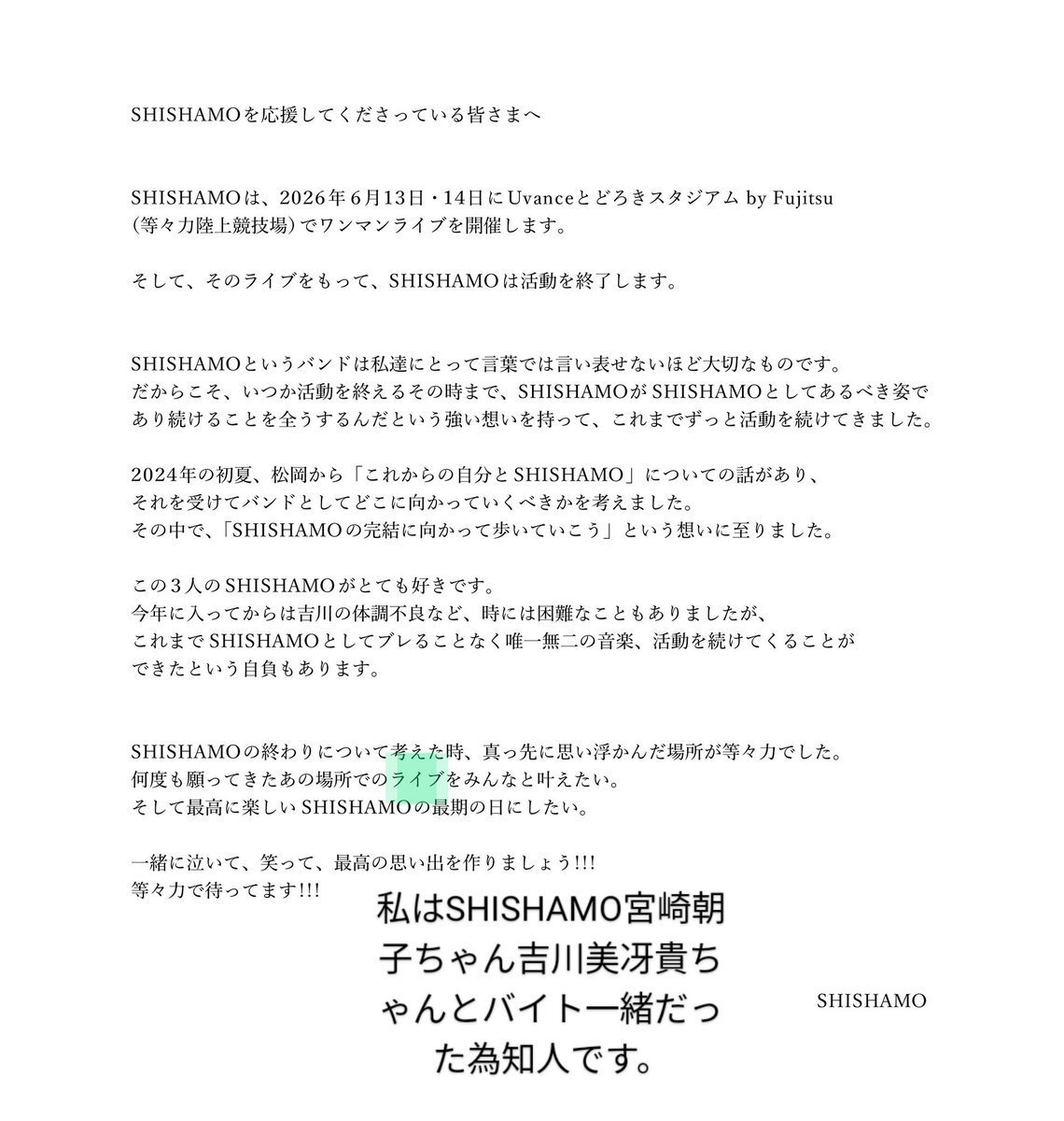 私はセツ・モードセミナーに通った時フジファブリック志村正彦君スガシカオさんが絵のモデルしてた為SHISHAMO🐟2人とバイト一緒だった為知人で 🐟の活動終了は望んだ事ではなく訳はLIVEは生きる意味も有 スガさん作詞RealFace youtu.be/EcyPCQ4cMdA?si…の生きていたいとLINKしてる為 より改善より応援🙇♀️ x.com/sumikatoikiru/…