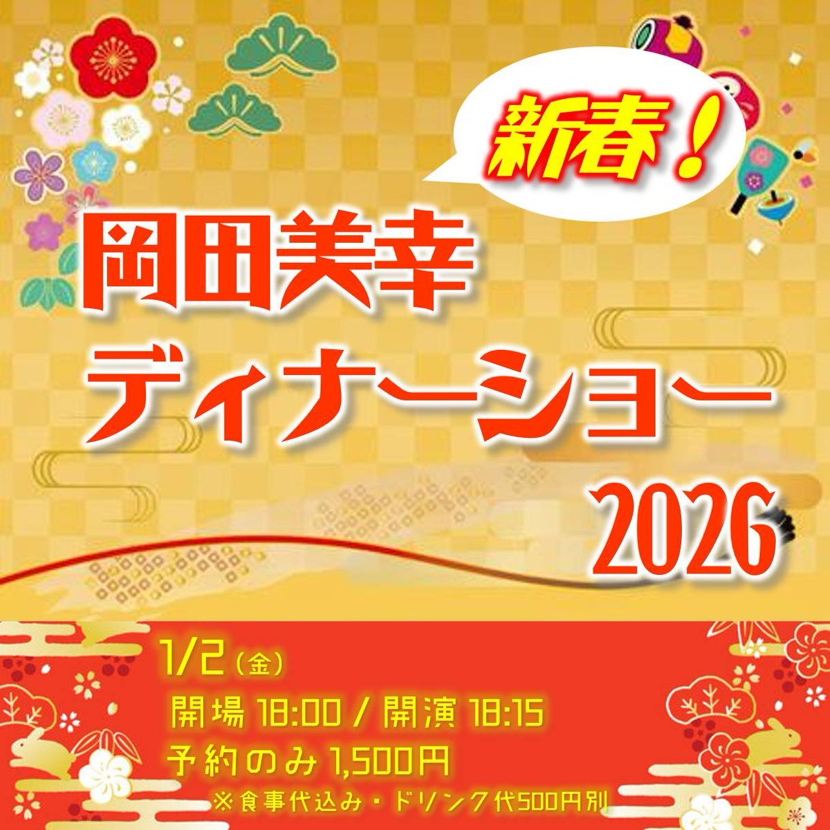 🆕 1月2日(金) 『新春!岡田美幸ディナーショー2026』 [会場] TEATRO西金沢 (石川県金沢市西金沢1-5) [開場]18:00 [開演]18:15 [料金] 予約のみ 1,500円 ※食事代込み ※ドリンク代 500円別 🎟tiget.net/events/451593 [出演] 岡田美幸 #KGC #カナザワガールズカンパニー pic.x.com/q8TOu7rL8J