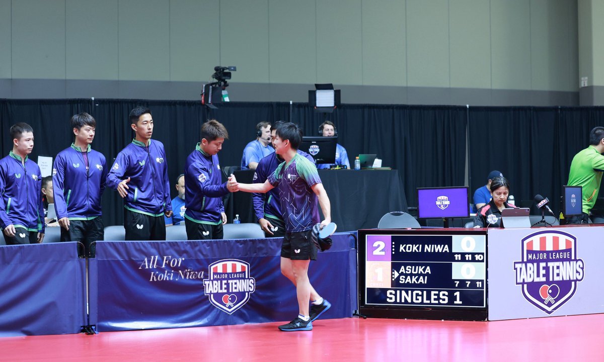 Debut at MLTT. Way to go! 丹羽孝希 2-1 酒井明日翔(11-7,11-7,10-11) 📅:2025/9/20 📍:Charlotte Convention Center #丹羽孝希 #kokiniwa #niwakoki #卓球 #tabletennis pic.x.com/9pGVQzPyMW