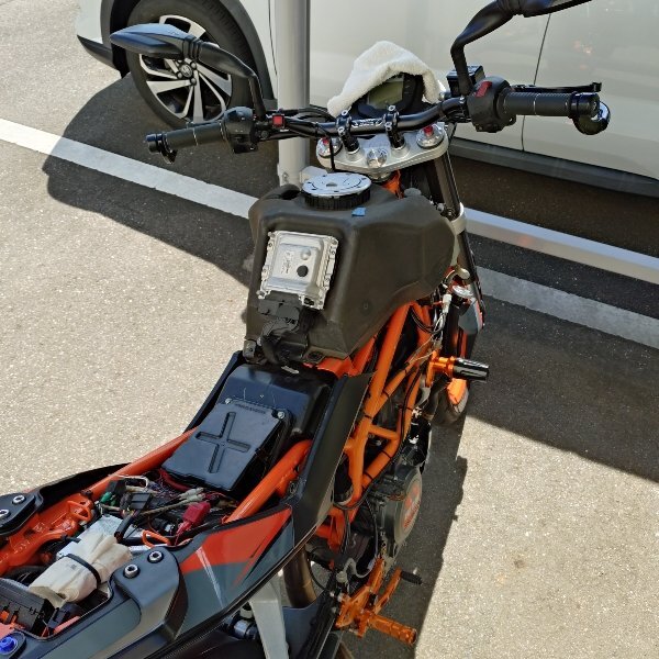 今日も今日とて、メンテナンスです。 タンクカバー外さないと、締められないネジあって・・こうなってます。 #KTM #250DUKE pic.x.com/lJ9b98anCe