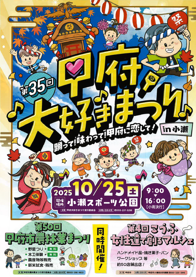 【毎年のお楽しみ♪】 ⭐第35回甲府大好きまつり ⭐第50回甲府市農林業まつり ⭐第4回こうふ女性達で創るマルシェ 10/25(土) 9:00~ 📍小瀬スポーツ公園 今から予定しておいてくださいね! city.kofu.yamanashi.jp/shimintaiwa/ev… #甲府 #甲府市 #kofu pic.x.com/VaZTOvpMbL