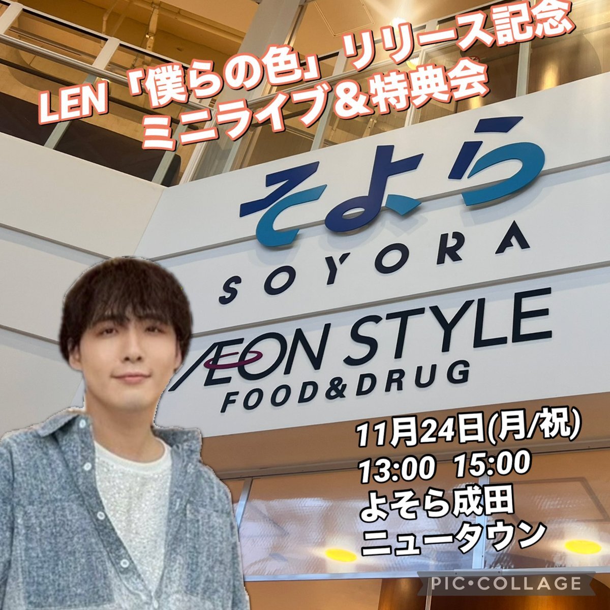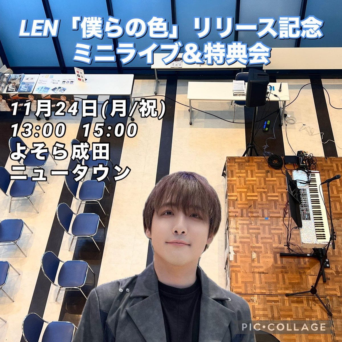 LEN「僕らの色」リリース記念 ミニライブ&特典会 * 11月24日(月/祝) * 1部13:00~ 2部15:00~ * そよら成田ニュータウン (ミニライブ観覧はフリー) ⬇️ len-official.com/news/p3117/ #LEN #pianomanlen #僕らの色 #リリース記念 @piano_Len pic.x.com/Kw4ljYhtWb