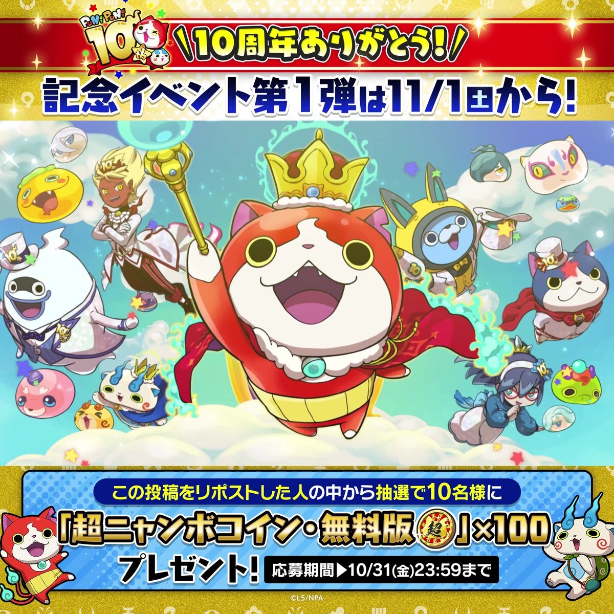 / 『妖怪ウォッチ ぷにぷに』 10周年記念イベント4連続開催決定! \ ぷにぷに10周年のお祝いとして、記念動画を公開! 記念イベント第1弾は11/1(土)から! イベントを遊ぶと、リアルグッズ「金の妖怪メダル」が当たるチャンス!お楽しみに! #ぷにぷに #ぷにぷに10周年