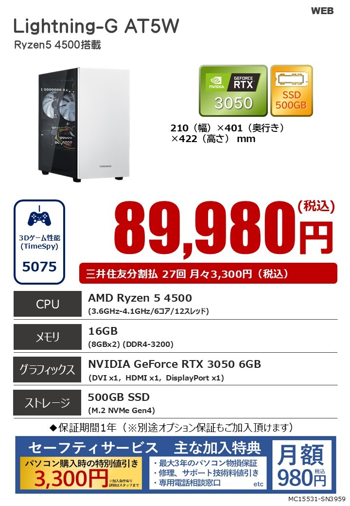 💰 10万円以下でゲーミングPCデビュー! #Lightning-G AT5W Ryzen 5+RTX 3050搭載、16GBメモリ 税込89,980円、分割払いOK パソコンの相談は宮崎恒久店で! 初めての方もサポートします🔰 #ドスパラ #宮崎 #ゲーミングPC pic.x.com/CKnnTNPX2Y