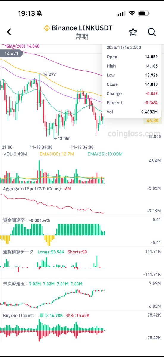 11/14 の $LINK は 15.21→14.59💔 その後もジワジワ下げて、11/20 には 13.52…まるで坂道を転がるコイン😅 でも11/19にはちょい反発あり📈 次の一手、どう動く? #暗号資産 #LINK 取引は BTCC Exchange で🚀 pic.x.com/TEgSMUaw3f