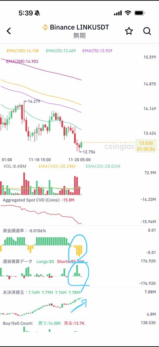 やっぱ下げてきたな 精算出たしFRマイナスやけど、ドージコインなりlinkなりお試しロングありちゃうかな ただ懸念すべき点は、建玉がまたもや増加し続けているという事やけど🤔 x.com/79kzvch5tbrx4x…