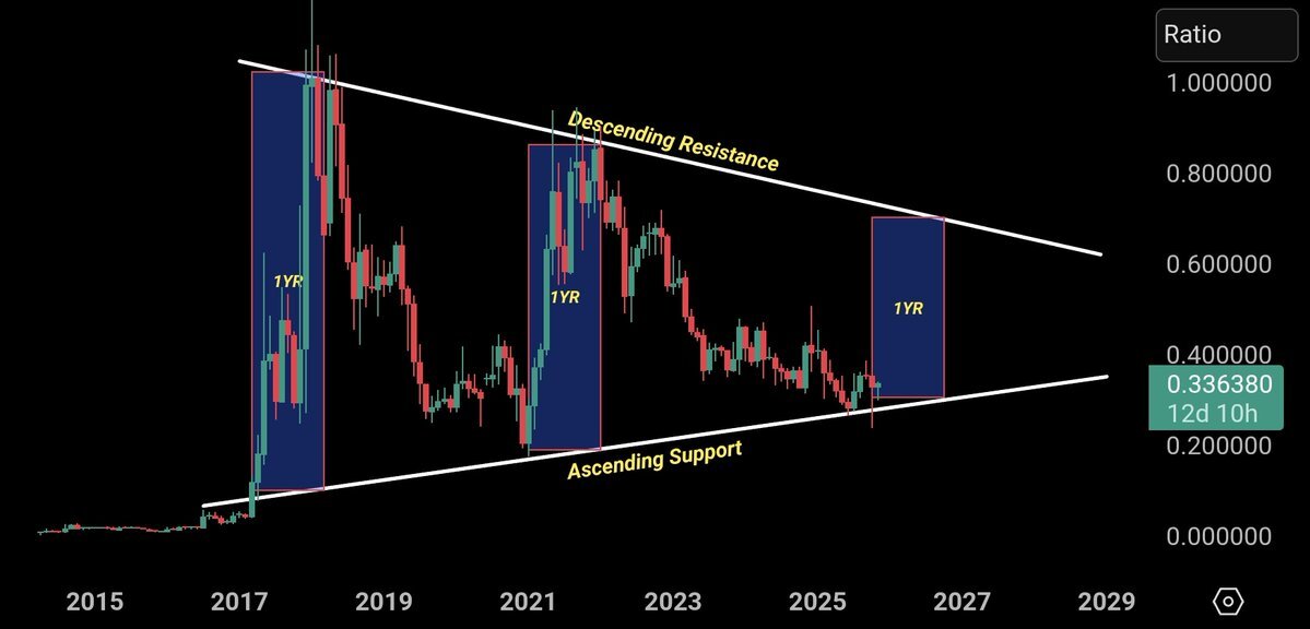 まじで何度も言いますが、アルトターンは来ます。そしてドージコインもリップルもライトコインも上がるでしょう。チャートがそれを物語っています。2026年はアルトが来る。楽しみですね。 #XRP #DOGE #LTC pic.x.com/itQ0F3Cz9s
