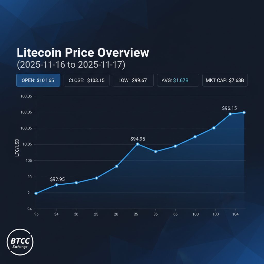 LTCマーケット速報📊】 11/17の$LTCは始値101.65→終値96.14💔 高値103.14 / 安値94.94、平均99.67と一週間の反発後に再び下落📉 ボラ高めで短期勢はチャンスあり🔥 取引はBTCC Exchangeで⚡ #仮想通貨 #LTC pic.x.com/OLvJ5v3MoI
