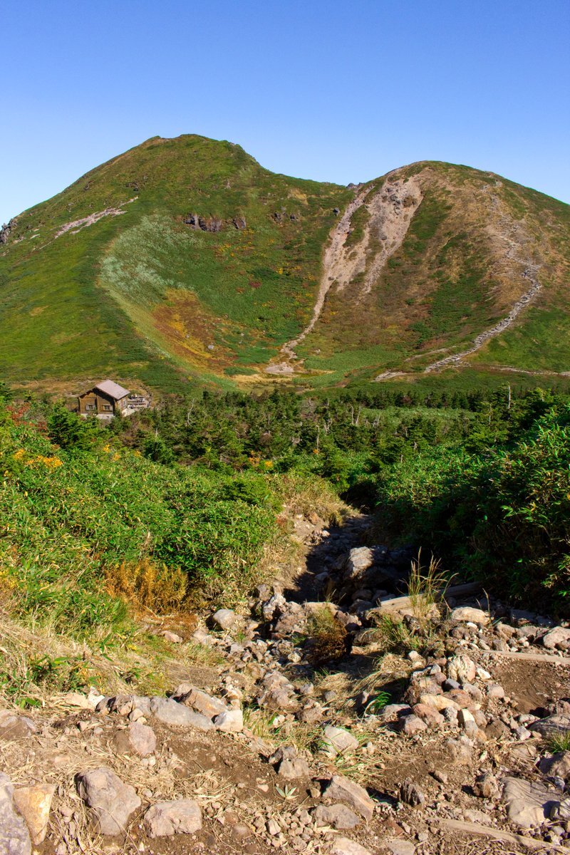 10月4日土曜日9時54分、八甲田大岳環状ルート♪ 大岳北斜面登山道より井戸岳&大岳鞍部避難小屋を眺むる♪ ヾ( * Φ ωΦ )ノ ヤッホ~♪ 4th October 2025. #大岳 #井戸岳 #八甲田 #八甲田山 #青森 #登山 # #Otake #Hakkoda #Aomori #Japan #mountain #autumn #landscape #photography pic.x.com/EALM4B2lml