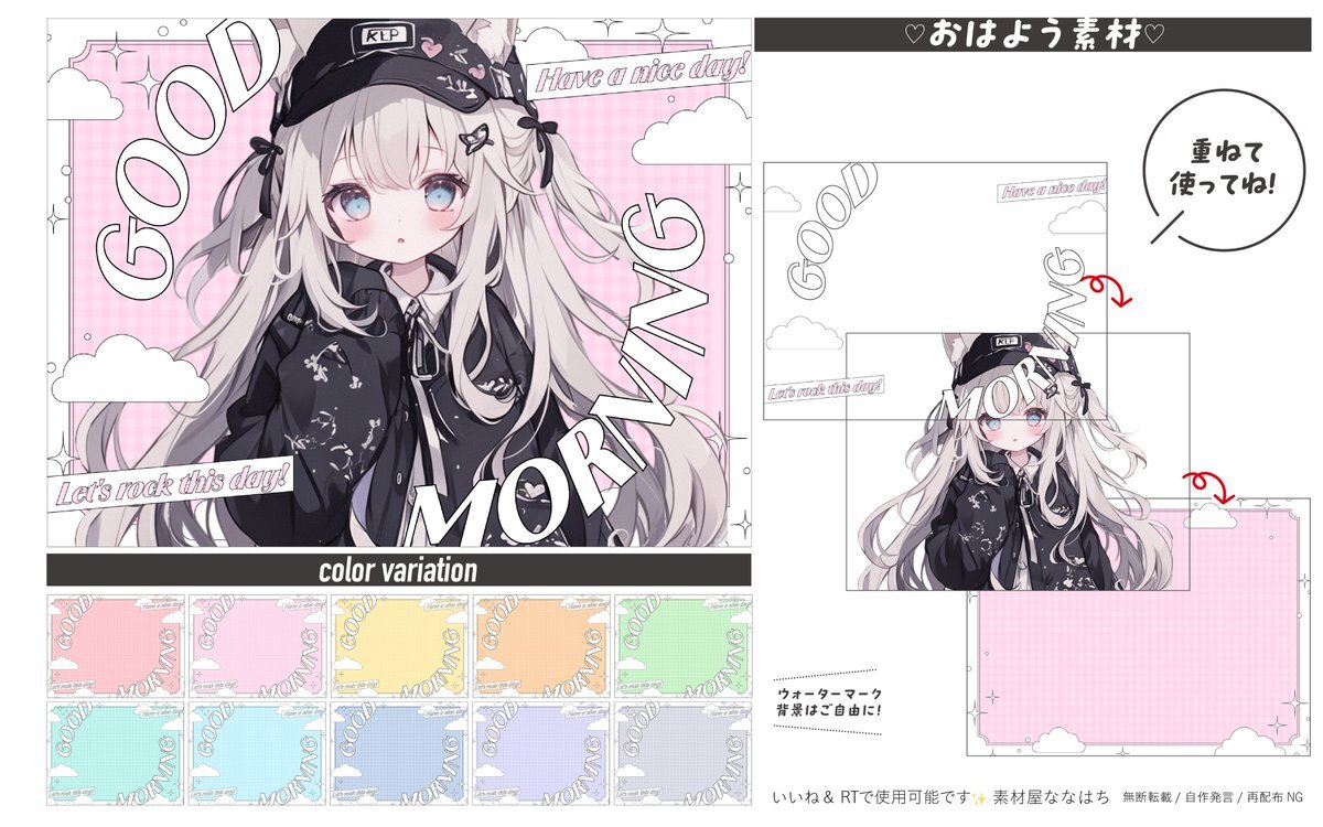 ✿ . ˚ おはよう素材 ˚ ✿. パステルカラーのシンプルなおはVです✨ いいね&RTで使用🆗 カラバリ10色✧︎*。 ツリーにつなげます🐝⋆゜ #VTuber素材 #フリー素材 #Vライバー素材 #素材屋ななはち #おはようVtuber素材