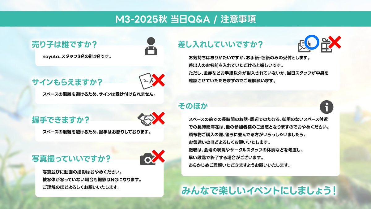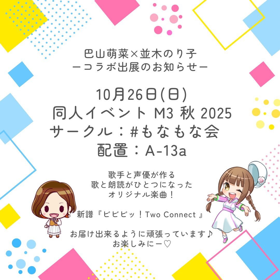💿M3-2025秋 (第56回即売会)💿 日時:2025年10月26日(日) 10:30~15:30 会場:東京流通センター(TRC)第一・第二展示場 入場料:前売 2,000円 (税込、カタログ代含む) 当日:2,000円 (税込、パンフレット代含む) #M3 #M3秋 #M3秋2025 #もなもな会 #もなのんたん_ビビビッ #もなのんたん_WITH pic.x.com/PNkzNYnSpT