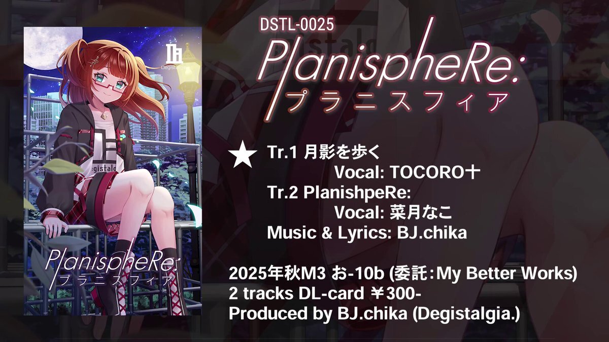 [新譜告知] #M3秋2025 #M3秋 お-10b (委託: My Better Works) センチメンタル哀愁ボーカルミニアルバム PlanishpeRe: Vocal: TOCORO十, 菜月なこ Music & Lyrics: BJ.chika 当日は私もスペースにいたりいなかったりする予定です、よろしくね! DL販売:dgst.booth.pm/items/7568454