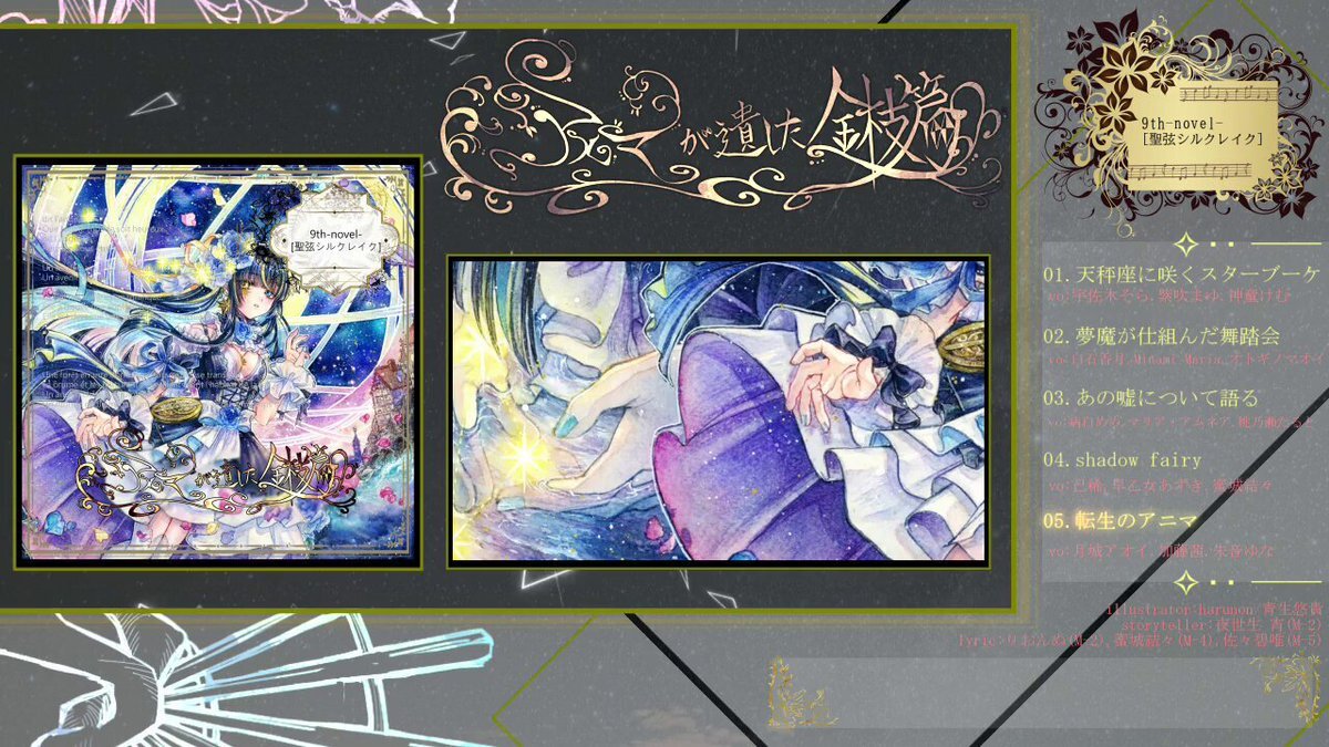 📔第5項【転生のアニマ】📖 ꒰ঌ文庫本を読み解くような世界観໒꒱ ――暗きクワイアで綴られた言葉。 疾走を彩るトランペット。 まるで主題歌のようなその想い。 ●shop● alma-mistletoe.booth.pm 25.10.26release:9th-novel-[聖弦シルクレイク]より 高音質 youtu.be/wWNcmGmn-f4 #M3 #M3秋 x.com/alma_mistletoe…