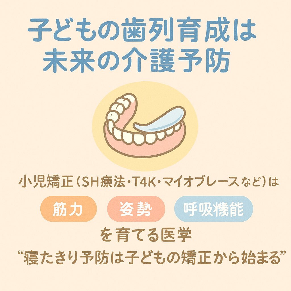 第8回:子どもの歯列育成は未来の介護予防 小児矯正(SH療法・T4K・マイオブレースなど)は 「将来の筋力・姿勢・呼吸機能」を育てる医学。 “寝たきり予防は子どもの矯正から始まる”。 #小児矯正歯科 #予防矯正歯科 #歯育て #SH療法 #T4k #マイオブレース #プレオルソ #MFT #こどもと女性の矯正歯科 pic.x.com/jqoeAXB2Ha