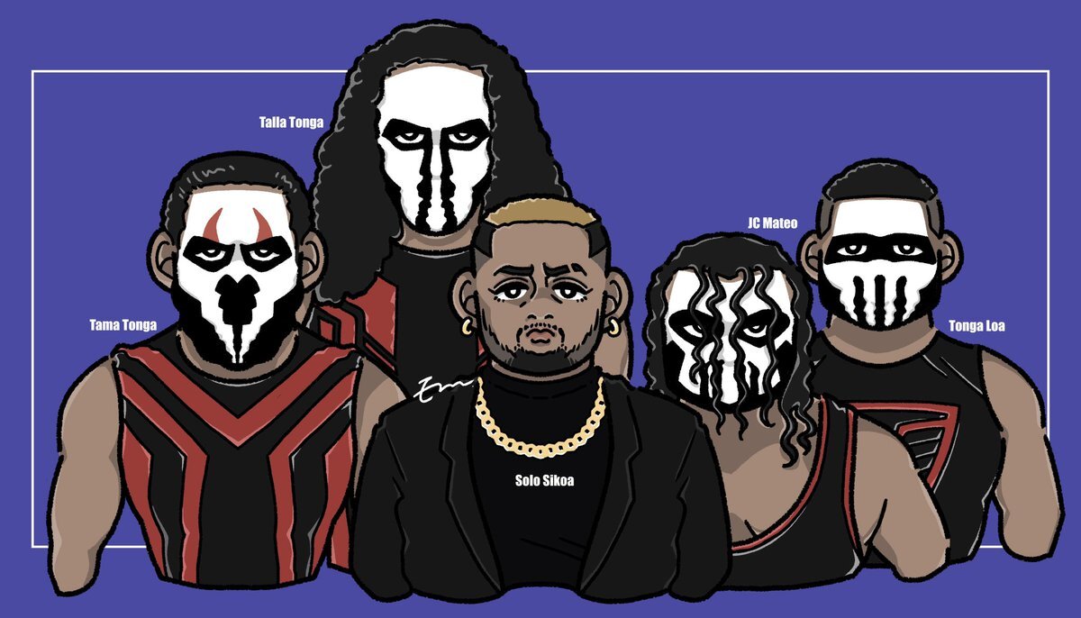 禍々しいフェイスペイント集団を引きつれてメンチを切る金アクセサリーじゃらじゃらボス、という構図に創作意欲を掻き立てられて、久しぶりにお絵描き頑張った #wwefanart #mft pic.x.com/1yPMoGDoEK