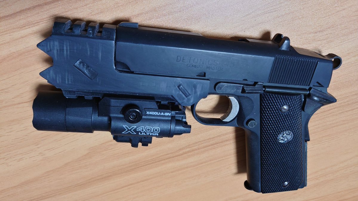 廃工場とかで撮影📸したいなぁ 手持ちのパーツで組めるの最後の銃 モデルガンにガスガン用の3Dプリンター製コンペンセイターを取り付け 微調整と積層跡の消し作業中 #MGC #モデルガン pic.x.com/fTRFxAw9zA