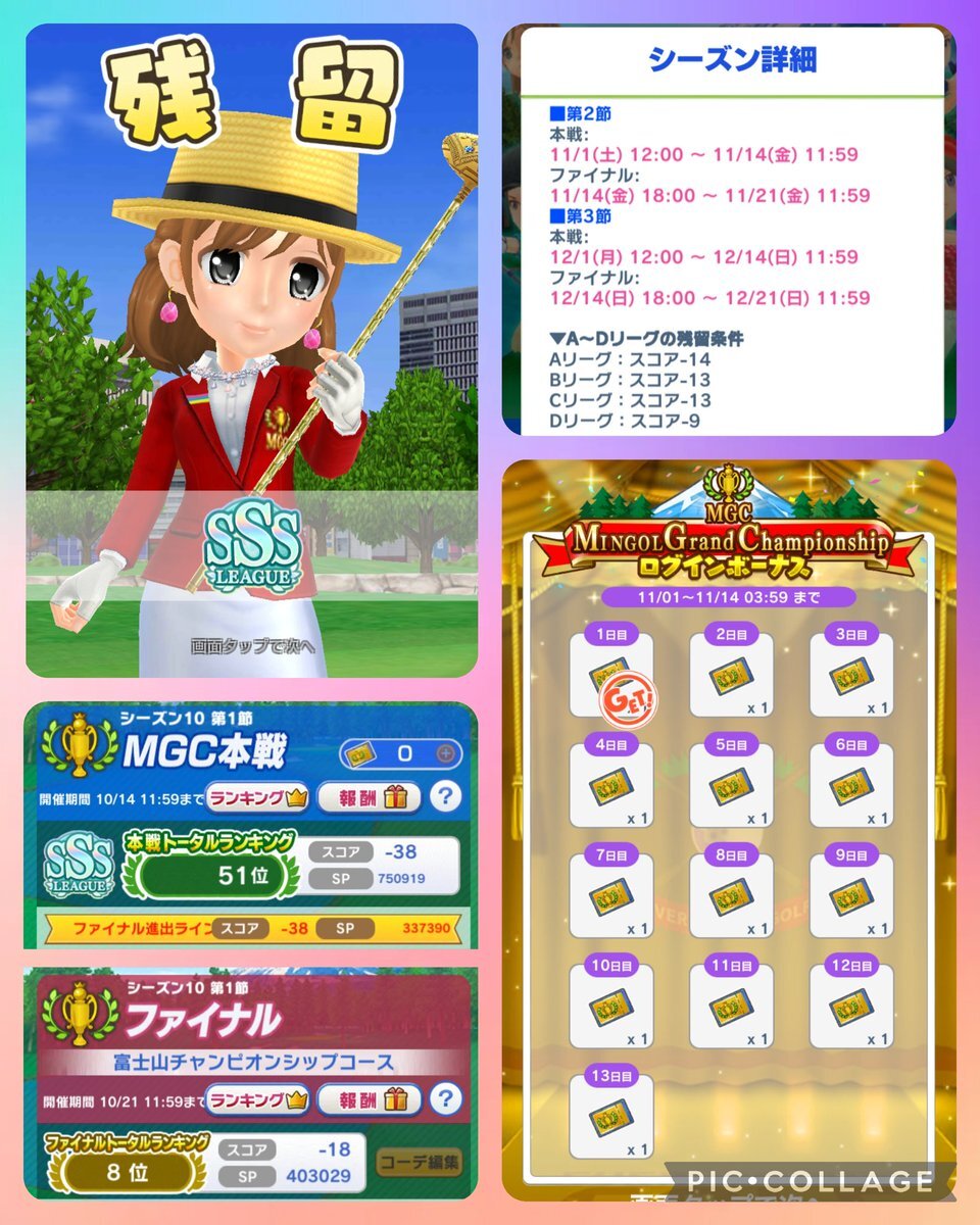 【MGC シーズン10 第1節】 かよちゃんと黒猫さんのYouTube動画を見ただけで、全く練習せずに終了1時間半前からエントリーだけでも・・・🤨 1~3Hでチップが取れなければ即リタイアの時短作戦で何とか降格ラインと同スコアに到達して残留となりました😅 #みんゴル #MGC #入院中 pic.x.com/65PPgGRQdY
