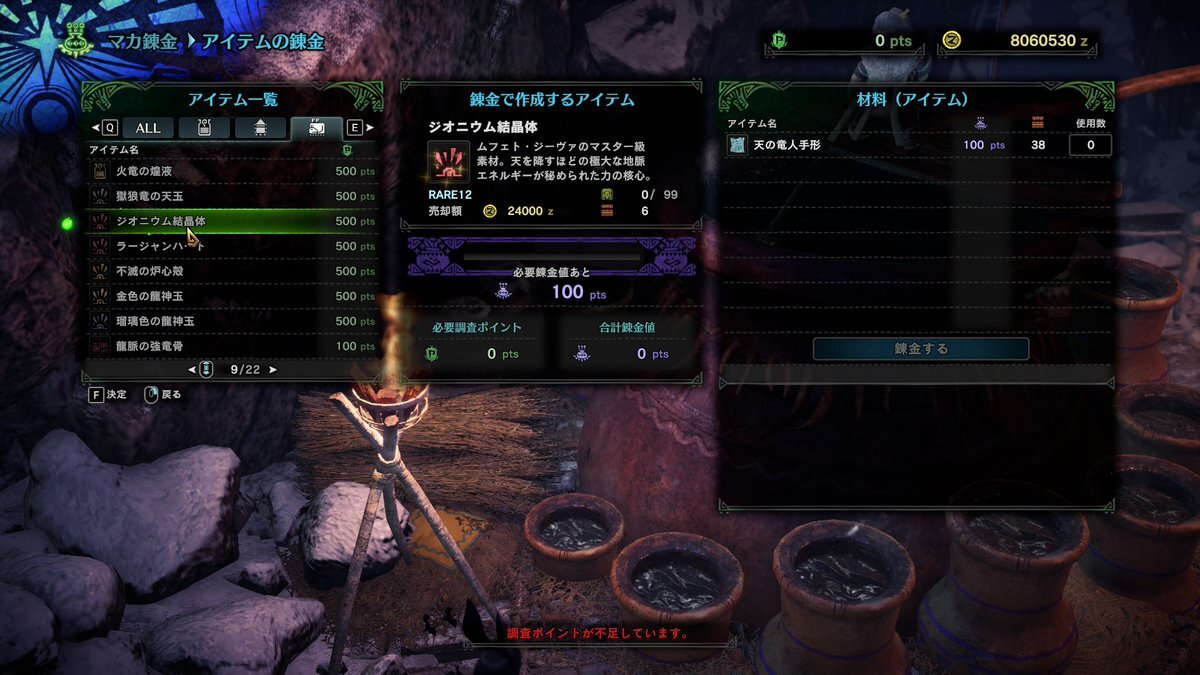 調査ポイントバッバイ ・・・いや、まって?ピタリ賞??? 金が少ないのは気のせいですw 調査ポイントは日々枯渇してますw ※ムフェトの麻痺太刀2本目狙いでマラソン中 麻痺特価太刀作りたくて…元が68枚スタートですw 完全に思い付きです。興味本位でチケ消化してますw #mhwi pic.x.com/PS06th0QER