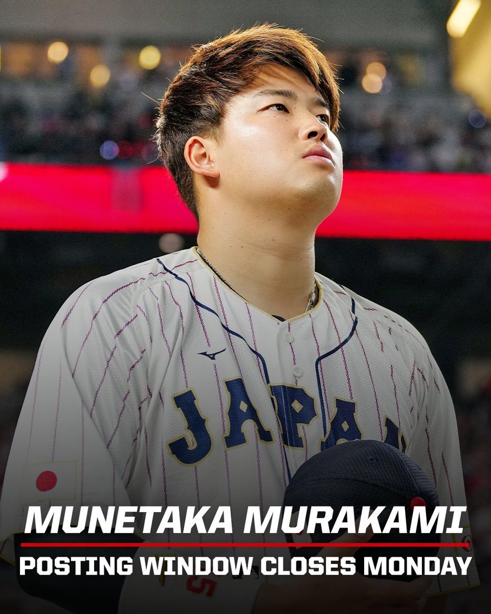 Japanese slugger Munetaka Murakami's posting window will close on Monday at 5 PM ET. The 25-year-old lefty slugger has 246 career home runs in the NPB and plays 1B/3B. Where will Murakami land when the deadline comes on Monday?