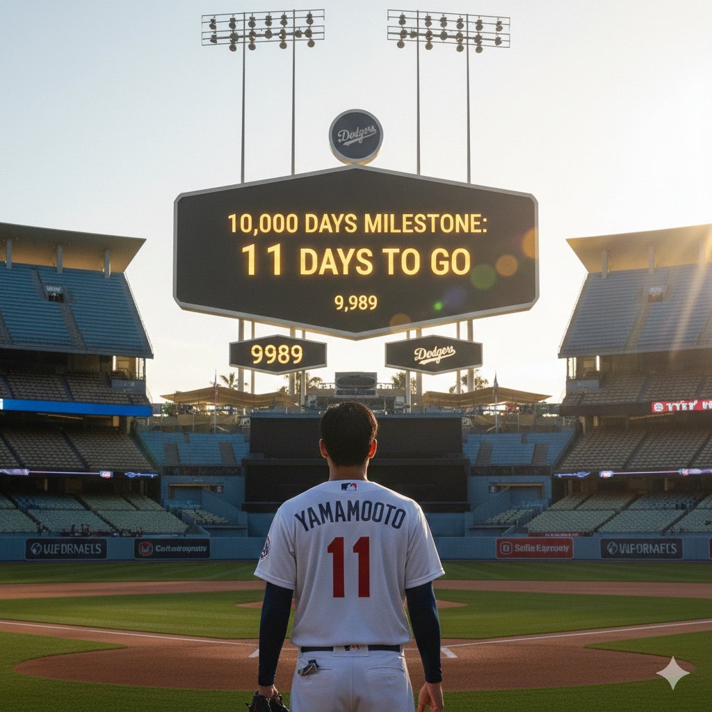 2026年1月1日の「10,000日目」まで、あと11日。 「1」のオンパレード 数字が重なる、特別な1日の始まり。 Road to 10,000 Days. #山本由伸 #Dodgers #生誕10000日 #あと11日