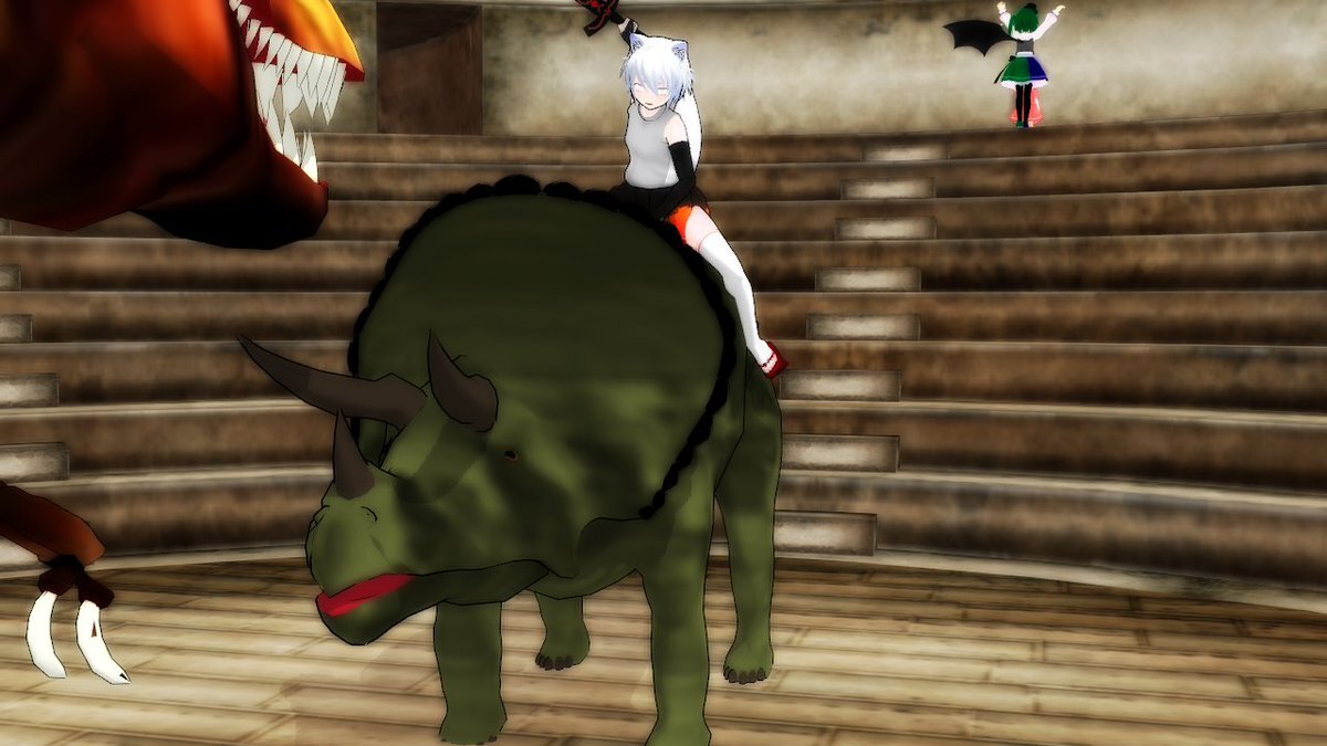 お題が恐竜なので。 椛:我は〇シ神の使い!行け!?〇ルネードスローして投げ飛ばせ!? 恐れることなど無いぞい!? 立ち向かう恐竜………? #東方MMD #東方Project #MMD #犬走椛 #橙 #静画祭り #静画祭り第35回