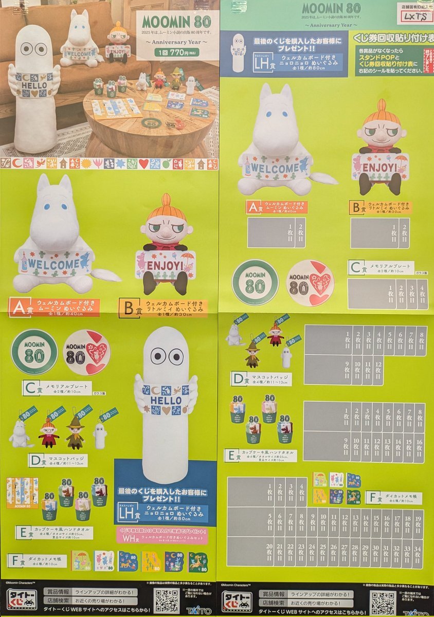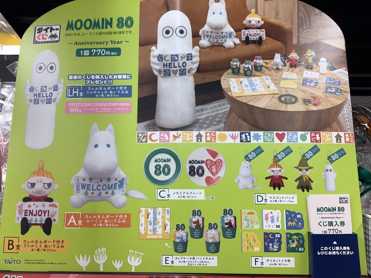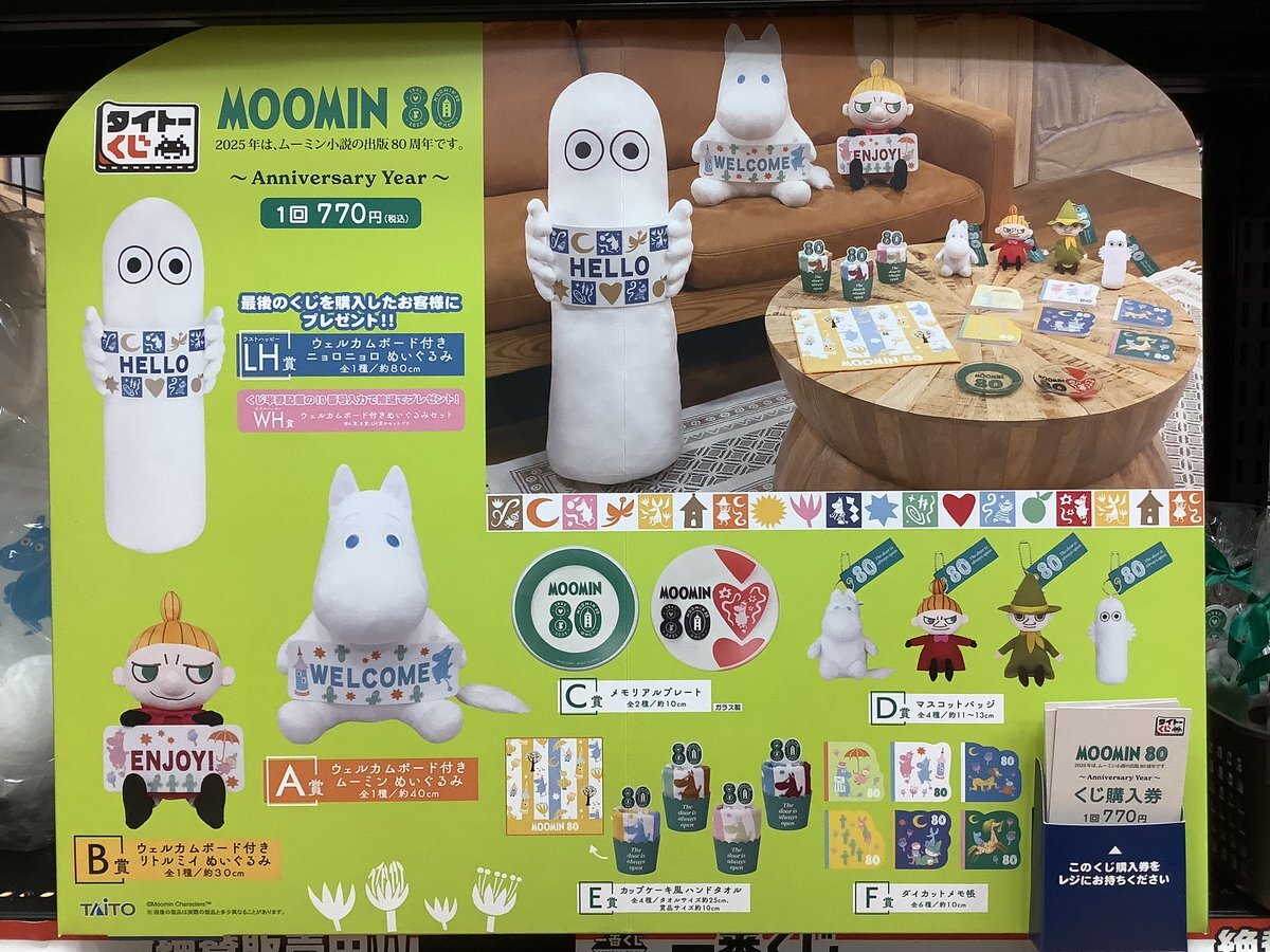 #タイトーくじ #くじ情報     #ムーミン 80     本日より開始‼️ みなさまの挑戦をお待ちしております😊 #Moomin #入間 #狭山 #所沢 pic.x.com/TDFaSAxT9t