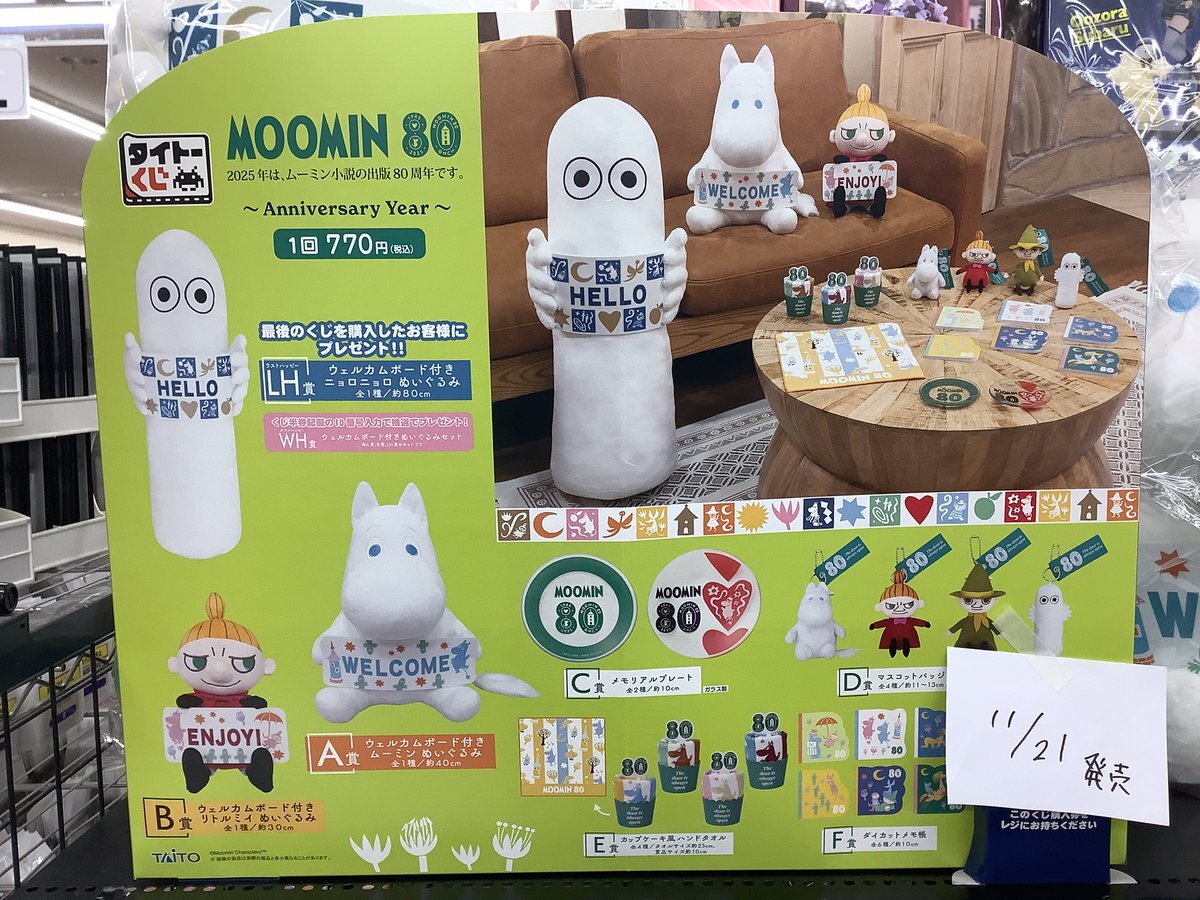 明日11月21日(金)開店9時から販売開始です! #タイトーくじ #ムーミン #Moomin 80 Anniversary year pic.x.com/AeKEQU5Mm4
