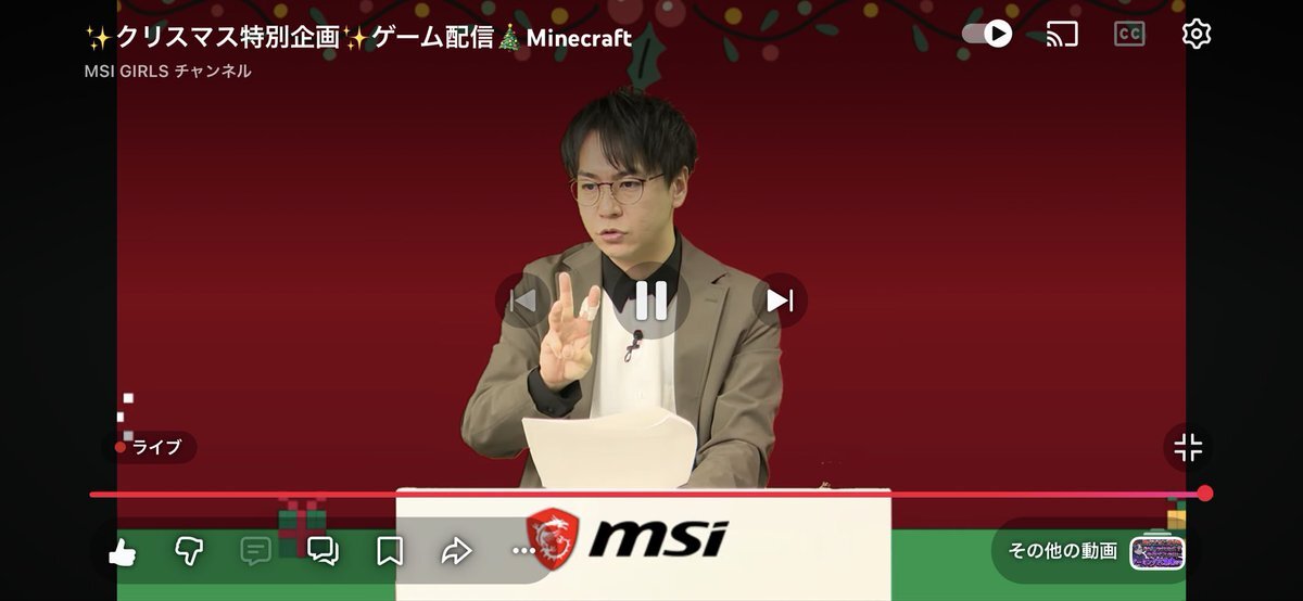 🎄まもなく17時~🎄(予定を早めました!) MSI GIRLSチャンネル クリスマス特別企画配信スタート✨ クリスマスプレゼントが当たるチャンスです👀❤️ ▶ 配信待機はこちら youtube.com/live/IJS0y97bH… 抽選で豪華3点セットを3名様にプレゼント🎉 【応募方法】 本ポストを引用+配信中スクショ+