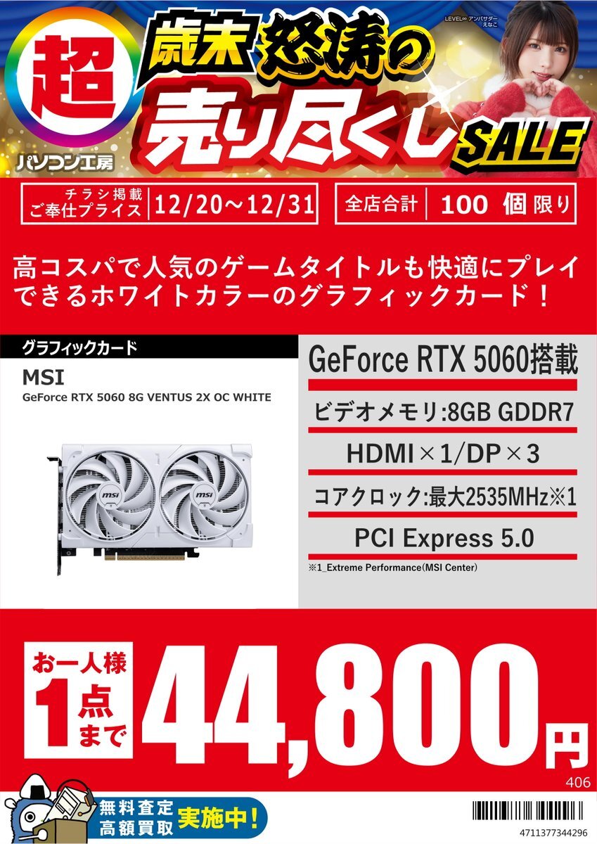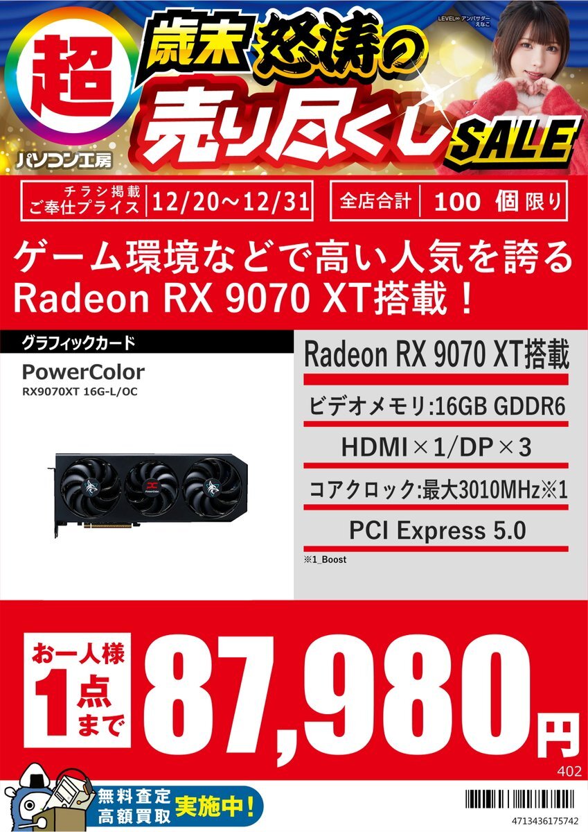 【セール品情報】 今週のグラフィックカードのセール品をご紹介‼ RX 9070XTなどの高性能なものから、高コスパの5060の白いモデルなどがセールでお買い得です🔧 お求めの際は是非パソコン工房大分店へ #グラフィックカード #パソコン工房 #MSI pic.x.com/QyQyoc4vg4
