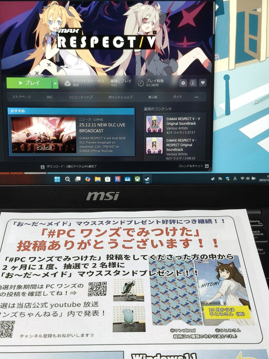 サブのノーパソが欲しいなーと思ったら、MSI製のアウトレット品があってポチ。 商品説明に無かったのですが、マウスパッドとマウスパッドが無料で付いてきた。神サービス! 意外と使い心地が良い、って調べたら、ゲーミングノートPCのシェア1位らしいよ。公式Vtuberあるよ。 #PCワンズでみつけた #msi pic.x.com/2OYYClnnHU