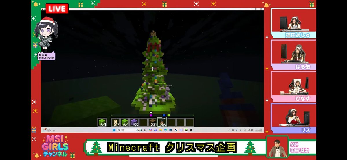 #MSIXMAS #MSI 20分でクリスマスツリー作ったの凄かった! みんなサンタ風の衣装で可愛かった! 田森さんも衣装がツリー風なカラーで素敵でした✨ おそらくMSIGIRLSCHANNELが出来てから配信は初の4人かな? みんな揃ってゲームしているところが見れて良かったです🥰 pic.x.com/xNFPzSC4hQ x.com/msicomputerjp/…