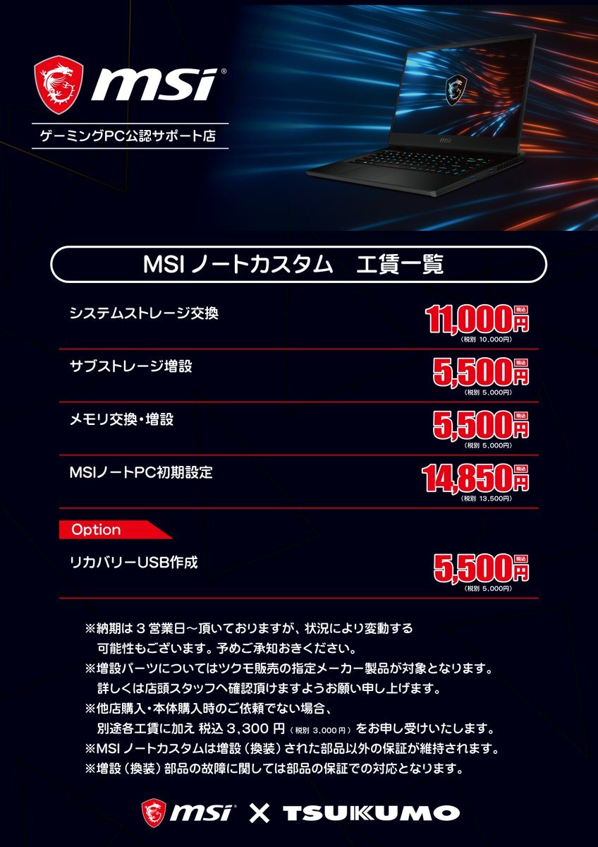 <<ツクモは #msi ゲーミングPC公認サポート店>> ・ストレージを増やしたい… ・メモリを換装したい… そんな時、ツクモは公認だから安心保証👌 弊社にて作業を実施した場合は、メーカー保証が継続します😊 万が一故障が発生した場合もカスタム後の状態で修理出しを行うことが可能‼️ pic.x.com/lZOiYfeanw