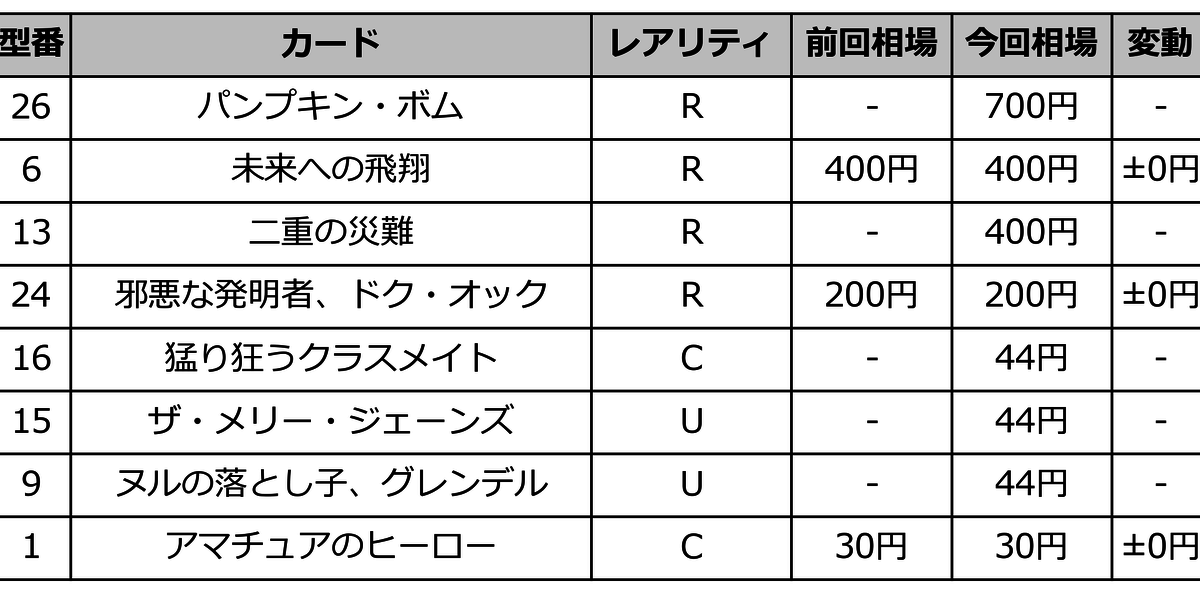 💎高額カード相場速報 マジック:ザ・ギャザリング—マーベル スパイダーマン SPEの高額カードTOP8をご紹介!(前月比) ・パンプキン・ボム (26 R) ・未来への飛翔 (6 R) 等 ✅ 詳細はこちら ↓ tcgprice.jp/mtg/series-201… #MTG #mtgjp pic.x.com/i01eqV1i6B