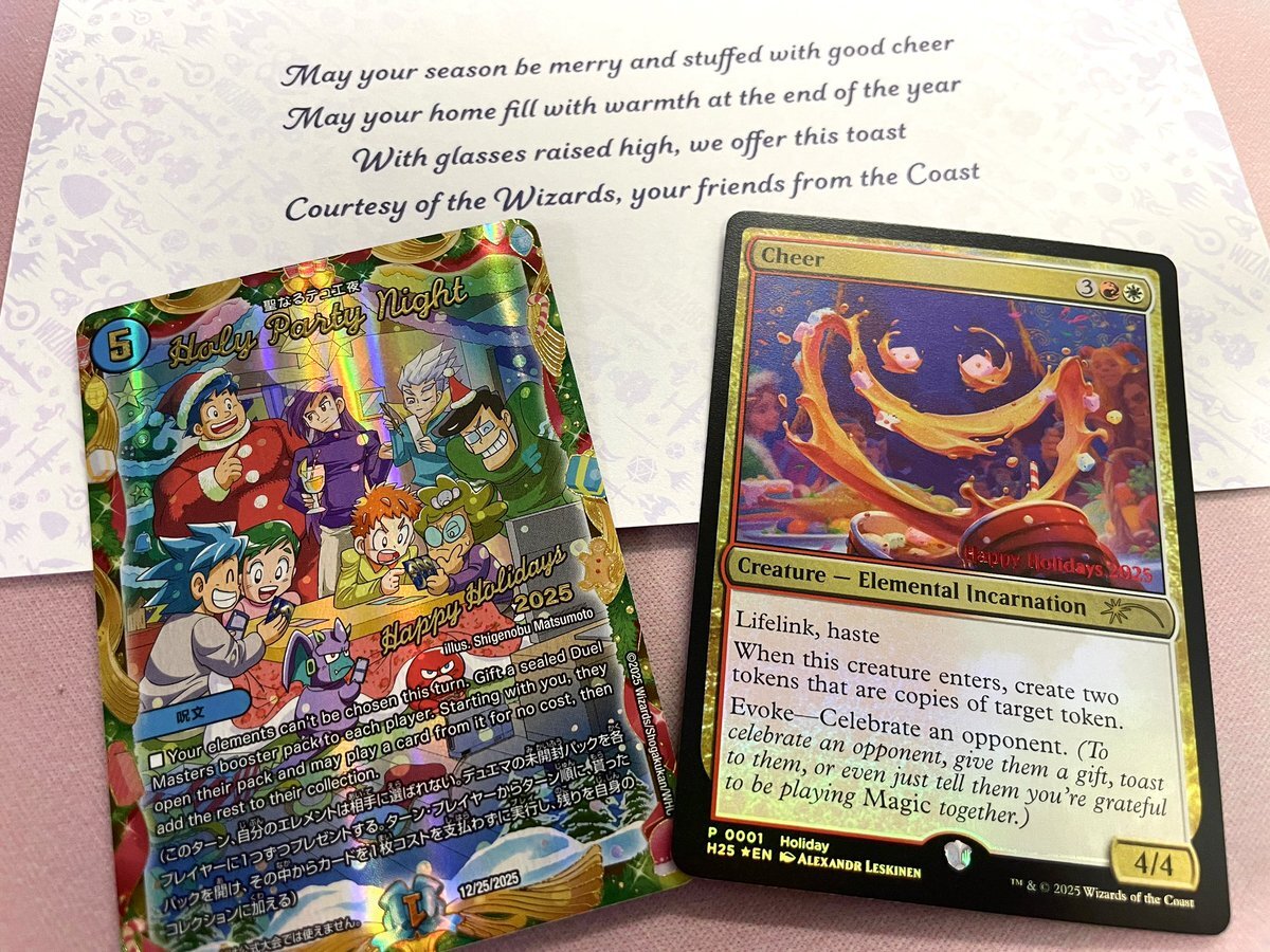 Wizards of the Coast @Wizards 社様よりとても素敵なホリデーカードが今年も届きました♪良いお年を!そして2026年も素晴らしい年でありますように!応援しております!大好きです😍❤️✨#デュエマ #MTG pic.x.com/VWKdq100K3
