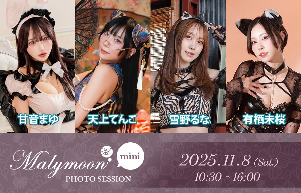 11/8(土)開催 #Malymoon撮影会 📸 抽選受付を開始いたしました🎫 🔗イベント詳細ページ malymoon-costume.com/view/page/phot… 📣抽選受付期間 10月10日(金)20時~10月20日(月)13時 🌼出演モデル/敬称略🌼 甘音まゆ @mayunekobaby 天上てんこ @_104channn 雪野るな @yukiruna_hotaru 有栖未桜 @arisu_mio pic.x.com/UKGxTiuSZG